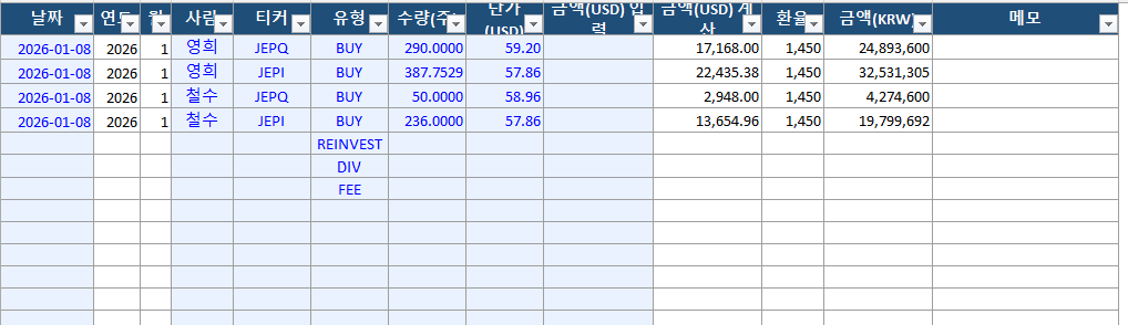 - 배당 들어오면 → 거래내역에 DIV 입력