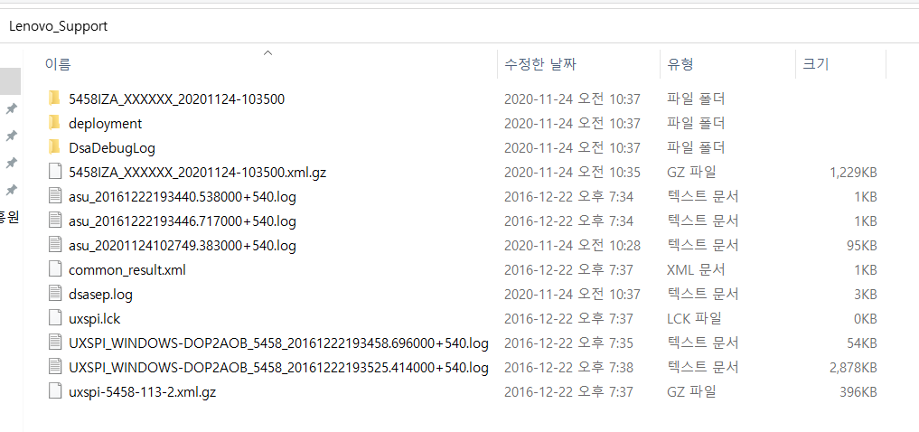 5. 하드웨어 및 서버의 정보들을 취합 후 IBM server의 경우 IBM_Support Lenovo서버의 경우 enovo_Support 폴더 안에 생성된다.